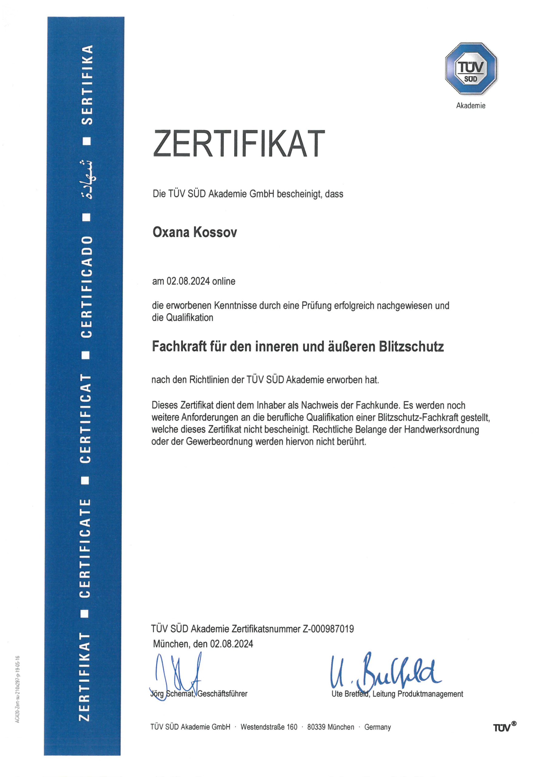 Unsere Zertifikate und Bescheinigungen