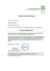 Durch intensive Aus- und Weiterbildung wird der Ausbildungsstand aller Mitarbeiter auf einem Niveau gehalten, das es uns ermöglicht alle Arbeiten für die Gewerke Erdung, Blitzschutz, Überspannungsschutz und Industrieklettern stets auf dem neuesten Stand der Technik auszuführen.